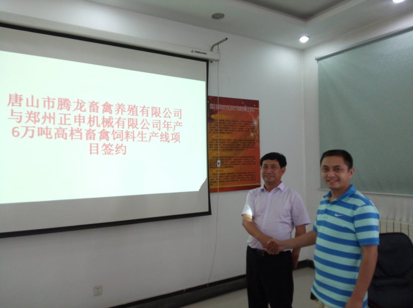 唐山市騰龍畜牧養殖有限公司與我公司成功簽約6萬噸高檔畜禽飼料生產線項目簽約。